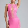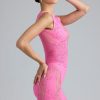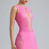 Create amplified festival looks with the Joni mini skirt. A coordinating piece for experimental outfits, it’s crafted from our seamless knit fabric that sculpts to your figure for a supportive fit. Designed for a mid-rise fit, it’s adorned with delicate lace panels and laser-cut details that enhance the contoured effect and perfectly placed rhinestone embellishments for a sparkling touch.