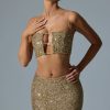 Make a statement. Perfect for styling with the coordinating top or an oversized tee depending on your plans, the Aubrey mini skirt is crafted from our luxe stretch fabric and overlaid with scores of sparkling sequins. Designed for a mid-rise fit, it’s cut to a figure-hugging bodycon silhouette.