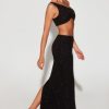 Showstopping separates. Perfect for glamorous evenings, the Trieste maxi skirt is a timeless silhouette with a low rise waistband and seductive thigh-high split. Designed in our premium dual lined mesh fabric with delicate beaded adornment throughout, style alone or with the matching top.