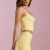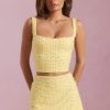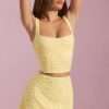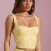 Embellished Square-Neck Crop Top in Yellow