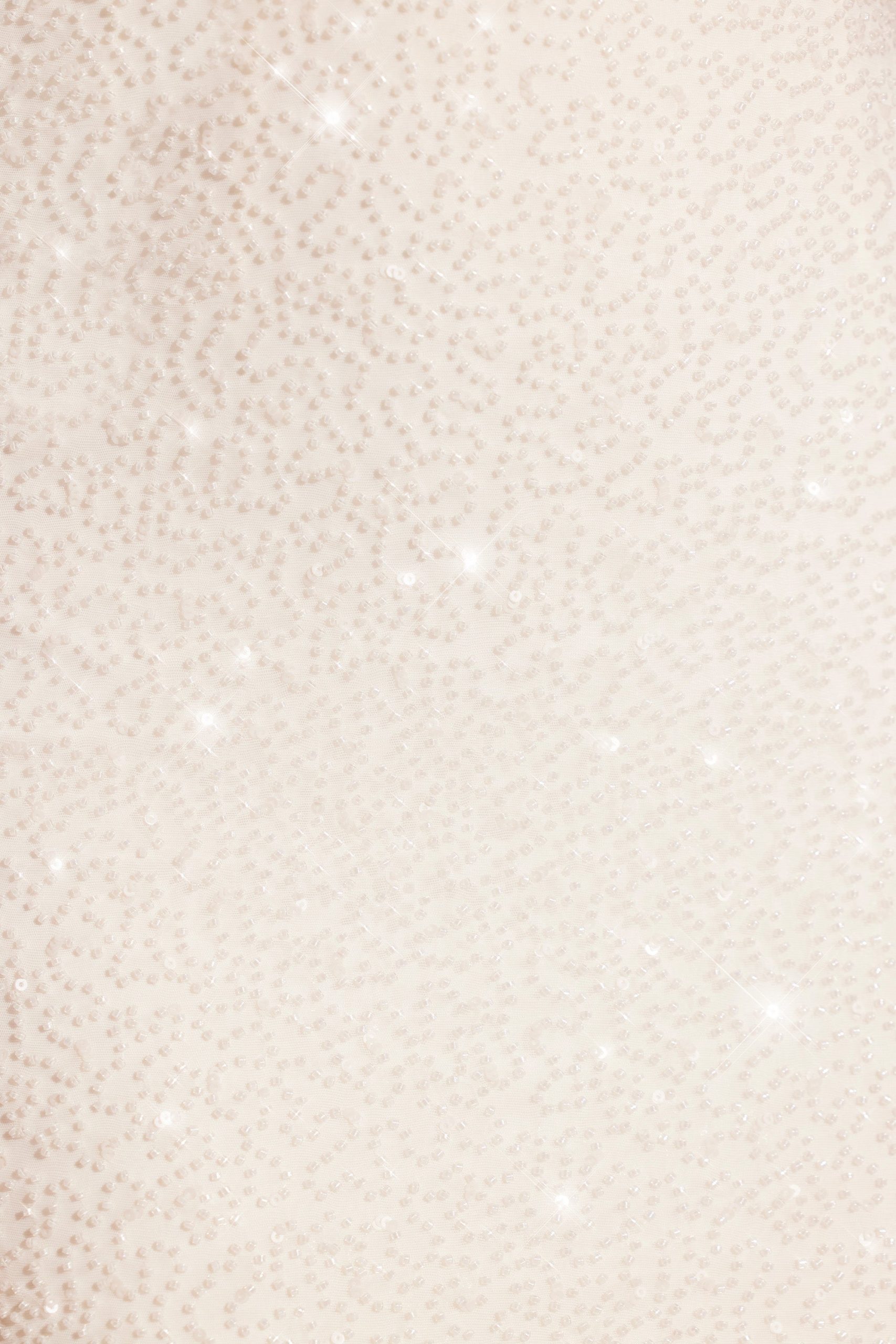 - Fully embellished with seeded beading