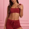 Fluffy Knit Mid-Rise Mini Shorts in Ruby Red