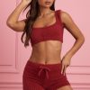 Fluffy Knit Mid-Rise Mini Shorts in Ruby Red