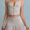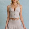 Denim you’ll adore. The perfect corset for your rotation, the Lotta top is crafted from premium stretch denim to a halterneck silhouette with a curved hem and perfectly placed panels that create a sculpting effect. It’s framed with a plunging V-neck, contrasting lace trim and decorative metal hardware button detailing at the front.