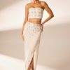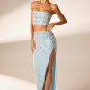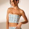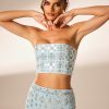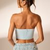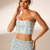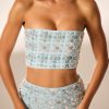 Hand Embellished Bandeau Corset Crop Top in Blue
