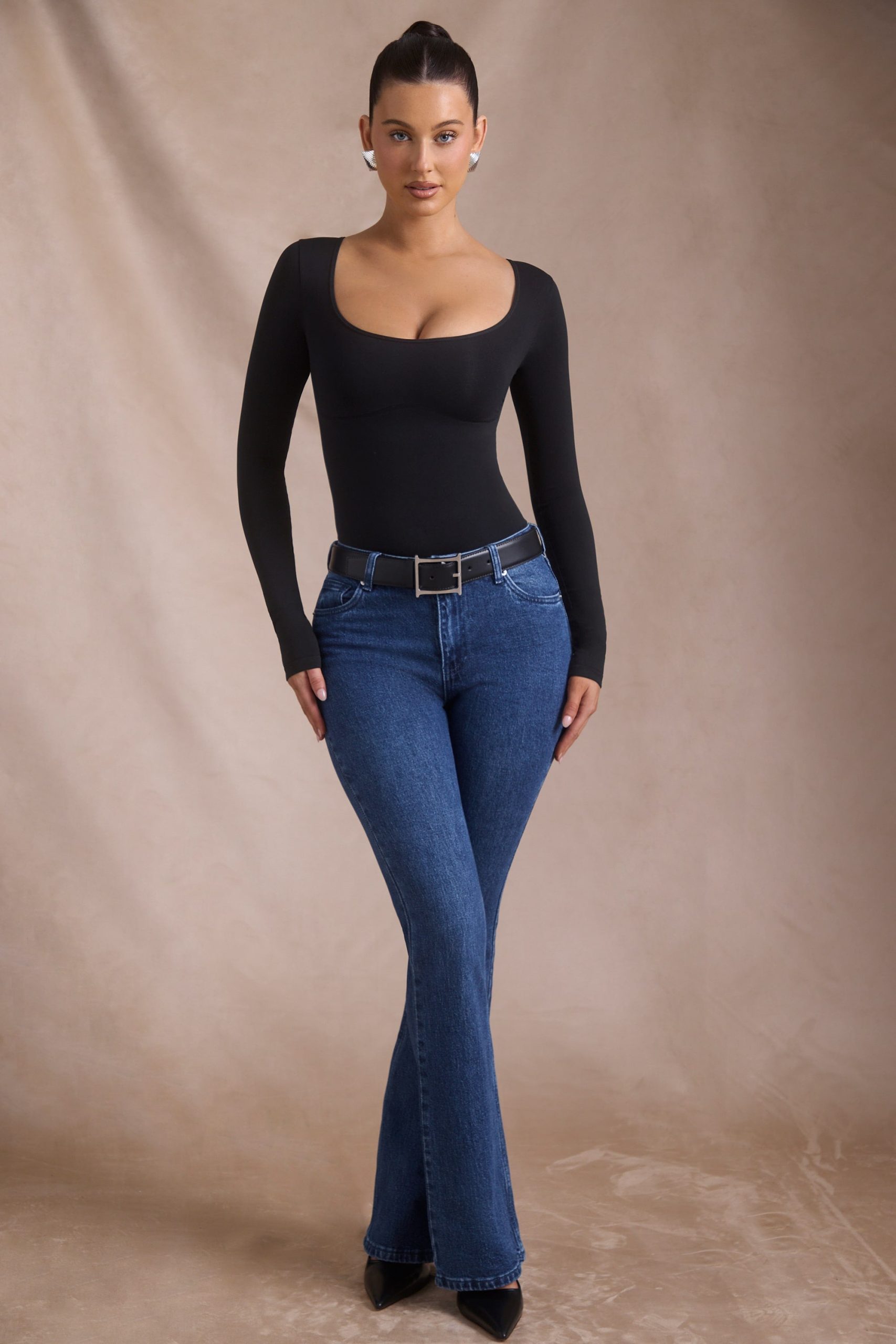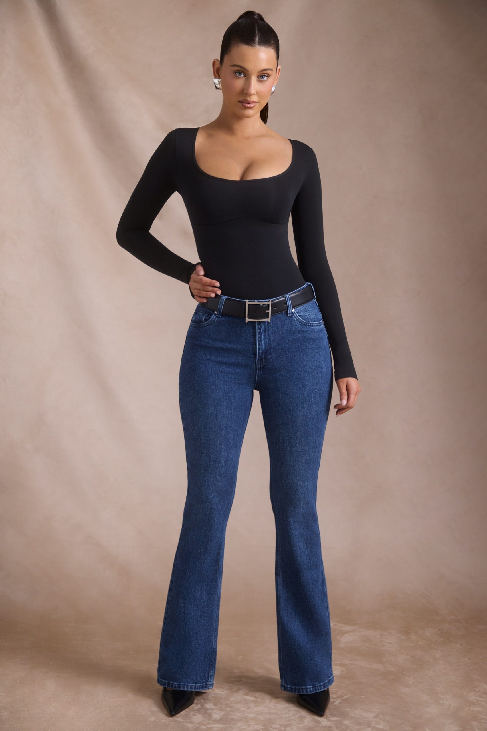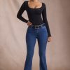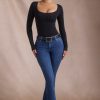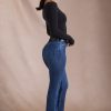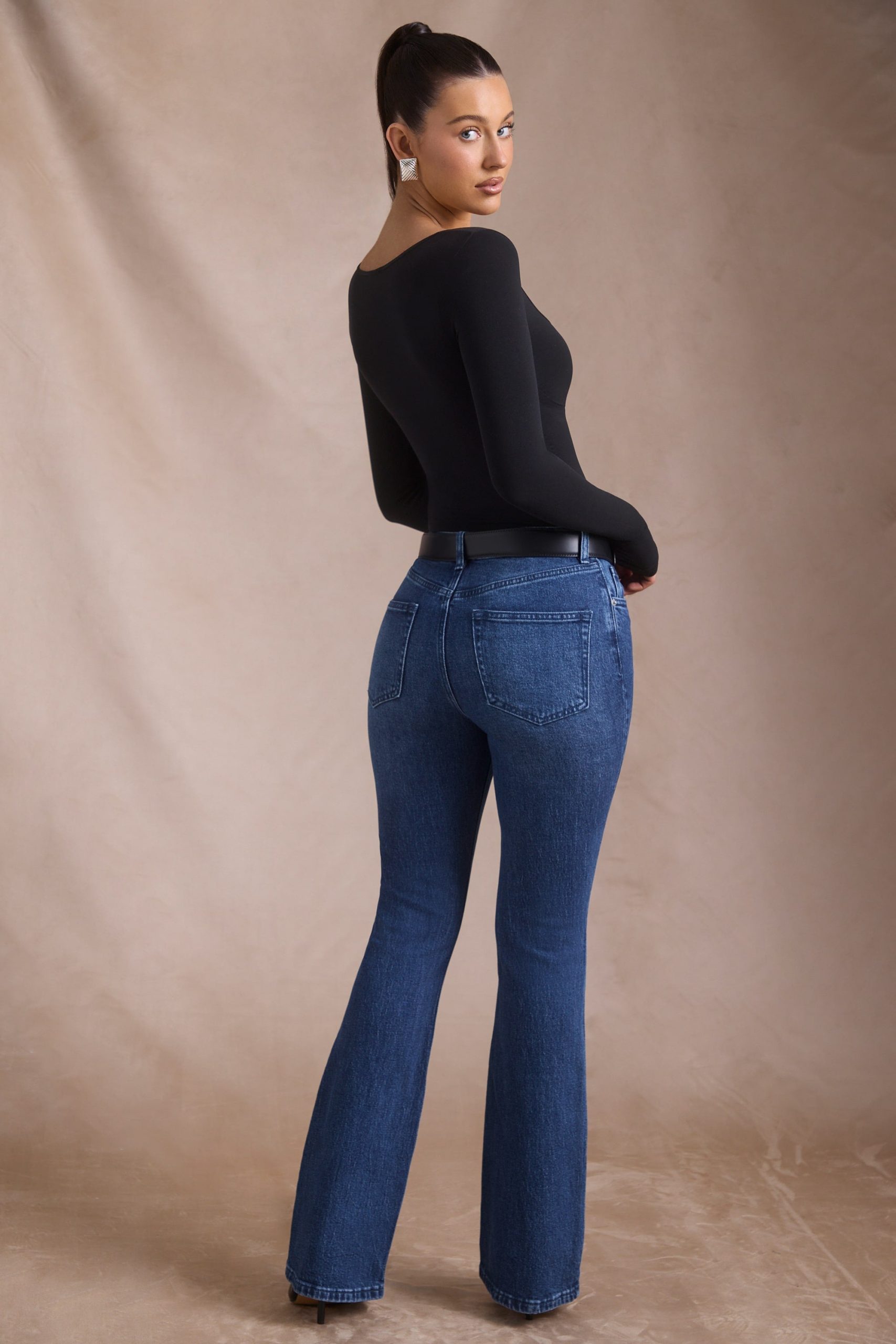 Essential denim. Crafted from rigid cotton denim that moves with you while retaining its shape, the Jacey jeans are designed for a high-rise fit and universally flattering fit-and-flare shape with patch pockets at the back. They’re lightly washed to achieve a vintage-inspired look for versatile styling with your favourite elevated staples.