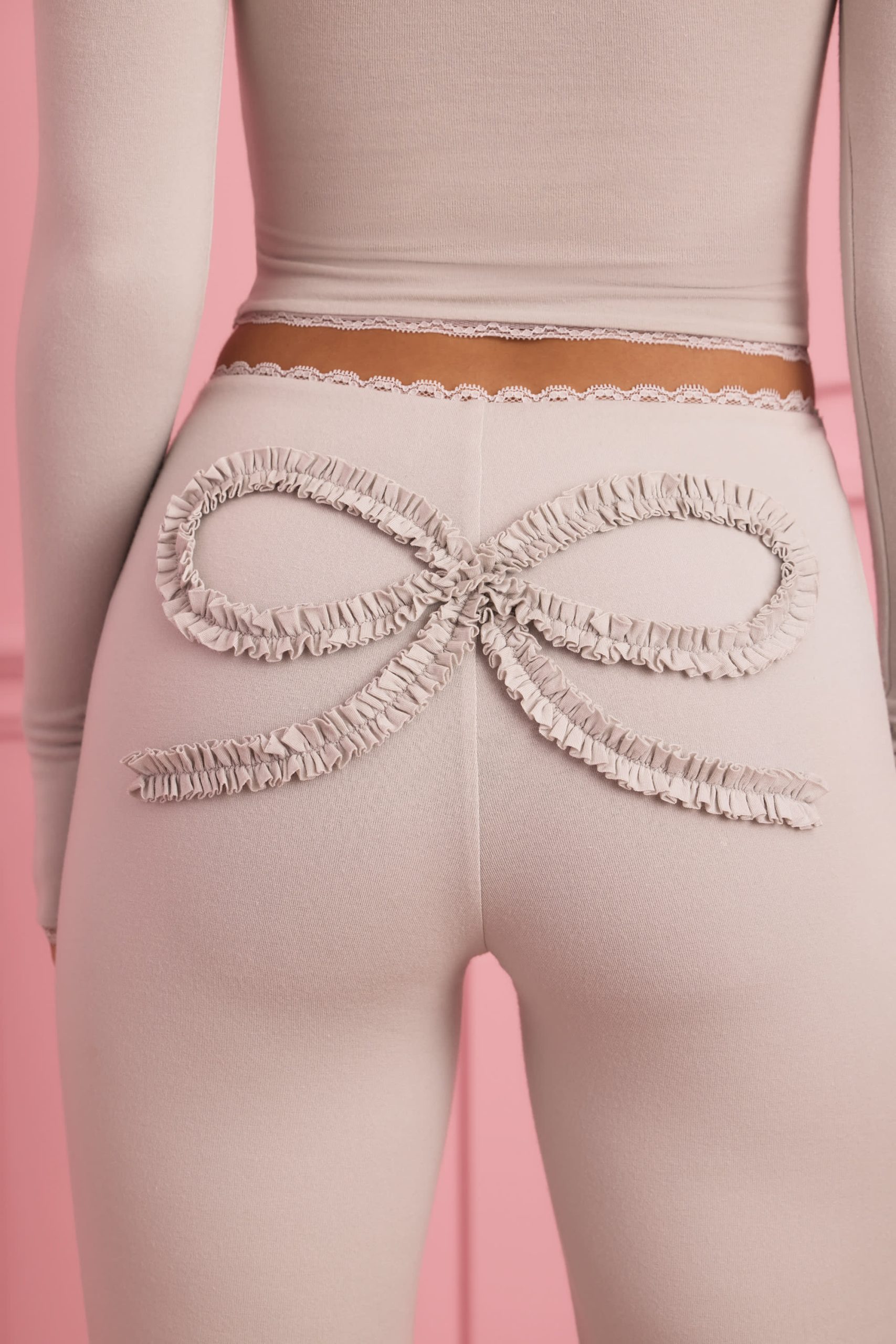Self-care moments just got cuter with the Lulu pyjama trousers. Crafted from buttery soft, breathable and lightweight stretch jersey made with Modal fibres, they’re designed to a comfortable straight-leg silhouette with a mid-rise elasticated waistband and delicate lace details. They’re elevated with a ruffled bow appliqué at the back that perfectly matches the Bowie top.
