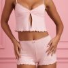 Comfortable and cute. Take lounging to the next level with the Tana top, a lightweight and breathable design, crafted from buttery soft and stretchy jersey made with Modal fibres. In keeping with the collection’s whimsical aesthetic, it’s traced with a pretty lace trim and cut to an open-front babydoll silhouette. It features adjustable camisole straps for your perfect fit and coordinates perfectly with the Kaci shorts.