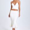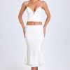 An ode to summer days. Available in two fresh hues, the Lupita midaxi skirt will take you from al fresco brunch plans to rooftop dinner dates. It’s crafted from figure-hugging stretch georgette and cut to a fishtail silhouette that creates a stunning hourglass shape. The stepped hem is traced with delicate lace trims and the low-rise waistband means it pairs perfectly with our Pippa top for a coordinated look.