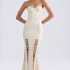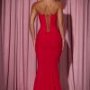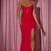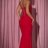 Lace-Up Corset Fishtail Maxi Dress in Red
