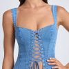 Designed to be dressed up or down, the Danna corset top is modelled on classic styles. It’s crafted from premium washed denim with a touch of stretch to a structured silhouette and enhanced with lace-up detailing at the front that can be adjusted for your perfect fit. The universally flattering sweetheart neckline is framed with adjustable tapered shoulder straps.