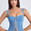 Designed to be dressed up or down, the Danna corset top is modelled on classic styles. It’s crafted from premium washed denim with a touch of stretch to a structured silhouette and enhanced with lace-up detailing at the front that can be adjusted for your perfect fit. The universally flattering sweetheart neckline is framed with adjustable tapered shoulder straps.