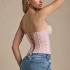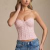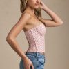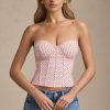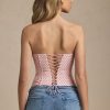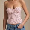 Lace-Up Strapless Corset Top in Pink Polka Dot