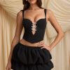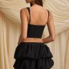 Layered Bubble Hem Mid-Rise Mini Skirt in Black