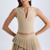 Precise tailoring. Made for versatile styling from day plans to dinner dates, the Nada mini skirt is crafted from premium stretch-woven fabric and designed for a low-rise fit. It’s elevated with two asymmetric, pleated tiers that create stunning movement with every step.