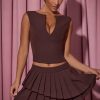 Precise tailoring. Made for versatile styling from day plans to dinner dates, the Nada mini skirt is crafted from premium stretch-woven fabric and designed for a low-rise fit. It’s elevated with two asymmetric, pleated tiers that create stunning movement with every step.