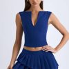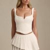 Precise tailoring. Made for versatile styling from day plans to dinner dates, the Nada mini skirt is crafted from premium stretch-woven fabric and designed for a low-rise fit. It’s elevated with two asymmetric, pleated tiers that create stunning movement with every step.