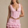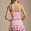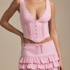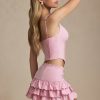 Elevate spring moments with the Lorena mini skirt, crafted from premium stretch woven fabric with a lightweight handle. Designed for a low-rise fit, it’s elevated with layers of scalloped ruffles, traced with a tonal lace trim and topped with a delicate bow embellishment at the front.