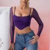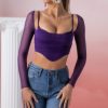 Smooth, sleek and in two alluring shades, our long sleeve crop top features a curved hemline and structured bodice with underwired cups, overlaid with soft mesh that works to sculpt your figure. Complete with spaghetti shoulder straps and semi-sheer long mesh sleeves, Eros was designed to stand out.Our Eros long sleeved crop top works perfectly with our Straight Talker denim jeans. Pair with high heels for your next girls night out look.