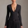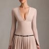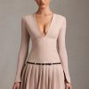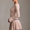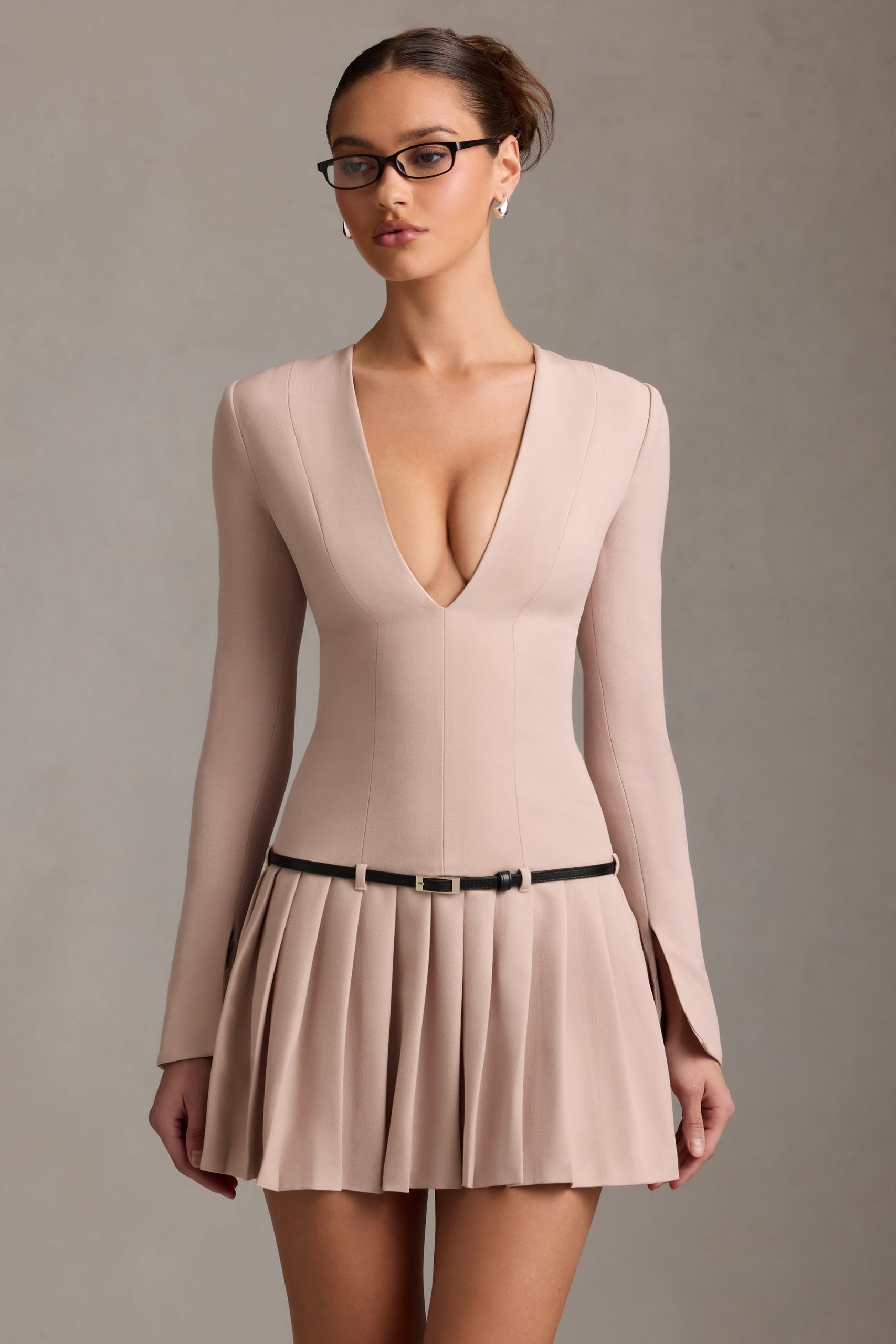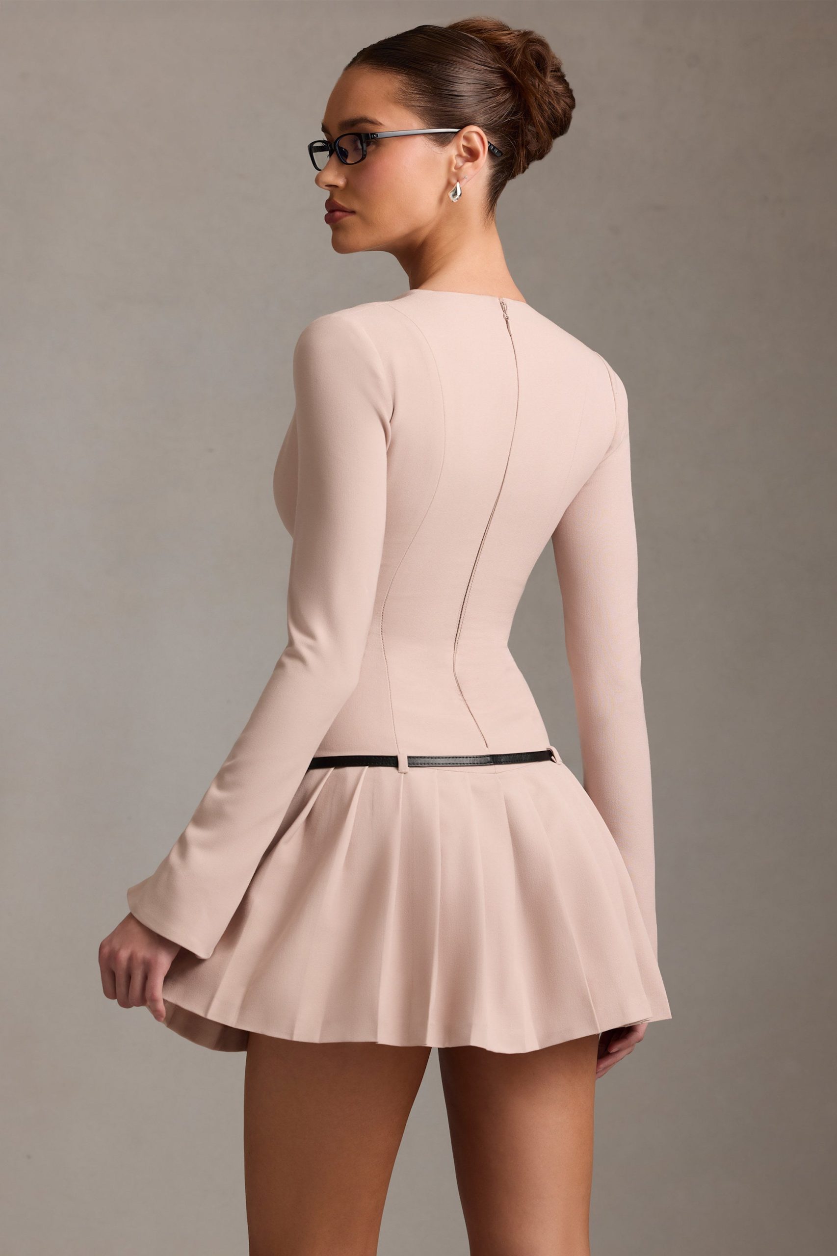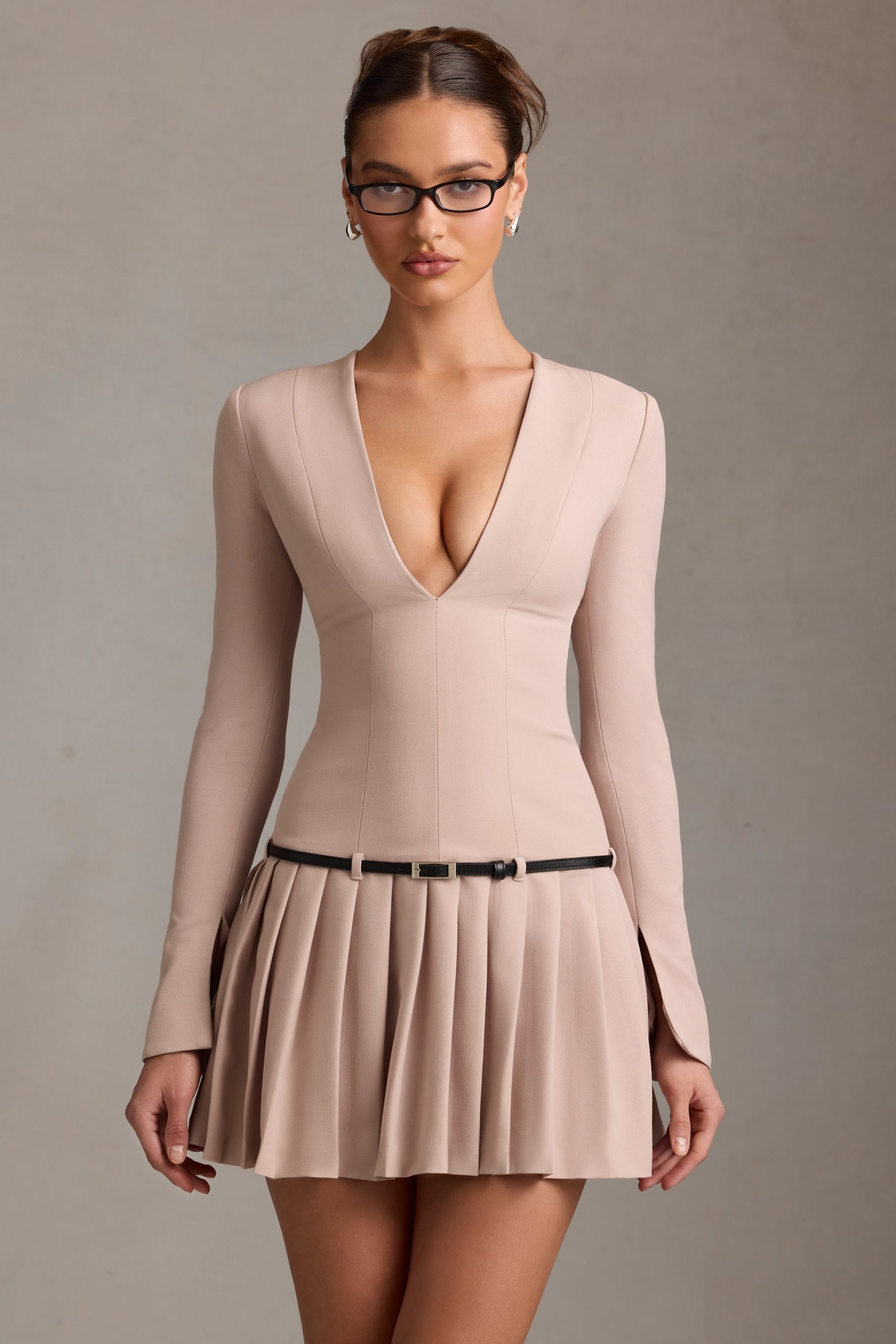 Long-Sleeve Pleated Mini Dress in Mushroom