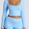 Fun and flirty, the Chamonix crop top is the ultimate summer crop. Cut from our premium stretch mesh fabric, Chamonix effortlessly combines support and aesthetic with the underwired and ruched cups. Criss cross detailing across the bust and frilly long sleeves add a flirty edge to this statement crop top. Bottomless brunch is calling and the Chamonix crop top is here for it.