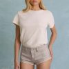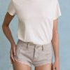 Summer styling. A playful silhouette made for sun-soaked days, the Lanori hot pants are crafted from premium denim with a touch of stretch for enhanced comfort and traced with a contrasting lace trim. They’re set on a low-rise waistband for versatile styling and finished with contouring exposed panels.
