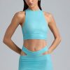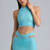 Metallic Cut-Out Low-Rise Mini Skirt in Ice Blue