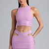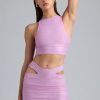 Iconic noughties-inspired separates. Designed to turn heads at all-day events and on island getaways, the Malika mini skirt is imagined in two vivid hues. It’s designed in our figure-hugging 20D stretch-mesh fabric to a low-rise silhouette with playful waist cut-outs and elevated with a high-shine metallic overlay that creates a sleek, liquid-like effect.