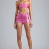 Playful festival-ready staples. Designed with all-day summer events in mind, the Piper shorts are rendered in two statement doll-inspired hues and are adorned with decorative silver-tone buckle detailing. They’re made from metallic stretch denim and cut to a micro length with a V-shaped waistband for a cinched, contoured look with a comfortable feel.