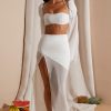 A sleek and elegant separate piece designed to elevate your evening wardrobe, the Eden maxi skirt is a perfect hybrid of sophisticated and sensual. With a mid rise waistband, the Eden maxi skirt features an upper panel designed in our premium satin fabric that hugs the hips and is cut to a diagonal before falling into a whimsical, semi sheer full length skirt. Complete with a seductive high split that elongates the legs, the Eden maxi skirt is a staple piece for creating a classic and elegant look.