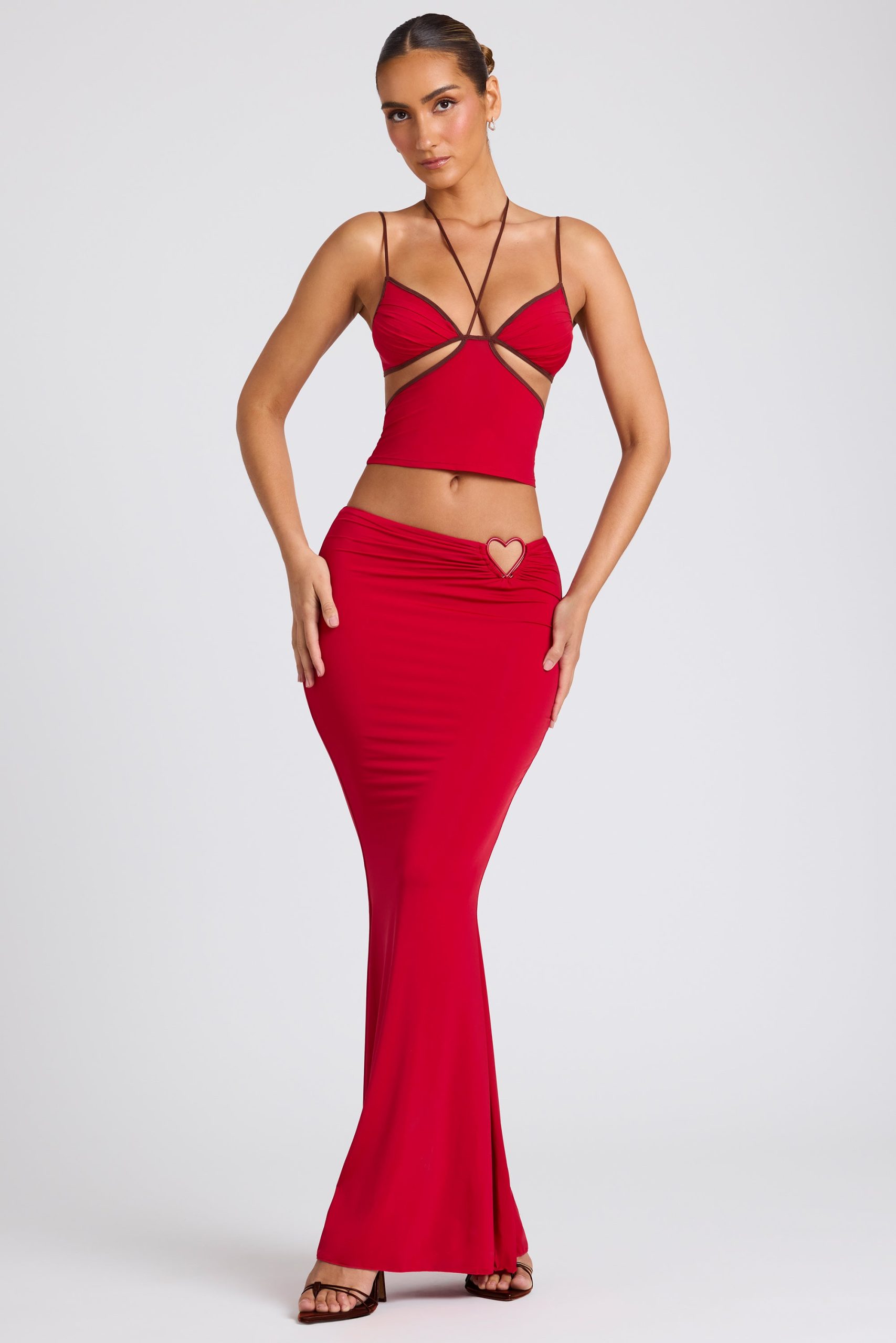Create a seductive two-piece look with the Sabine skirt. Cut to a flowing maxi length, Sabine is designed in our premium stretch jersey fabric for a soft yet sculpted fit. Its clean mid-rise waistband and stunning metal hardware detailing are sure to set hearts aflutter.