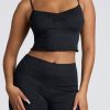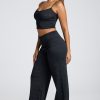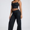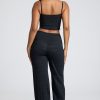 Mid Rise Straight Leg Pointelle Trousers in Black