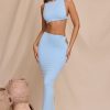 Mid Rise Twist Maxi Skirt in Sky Blue