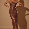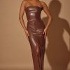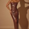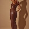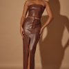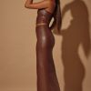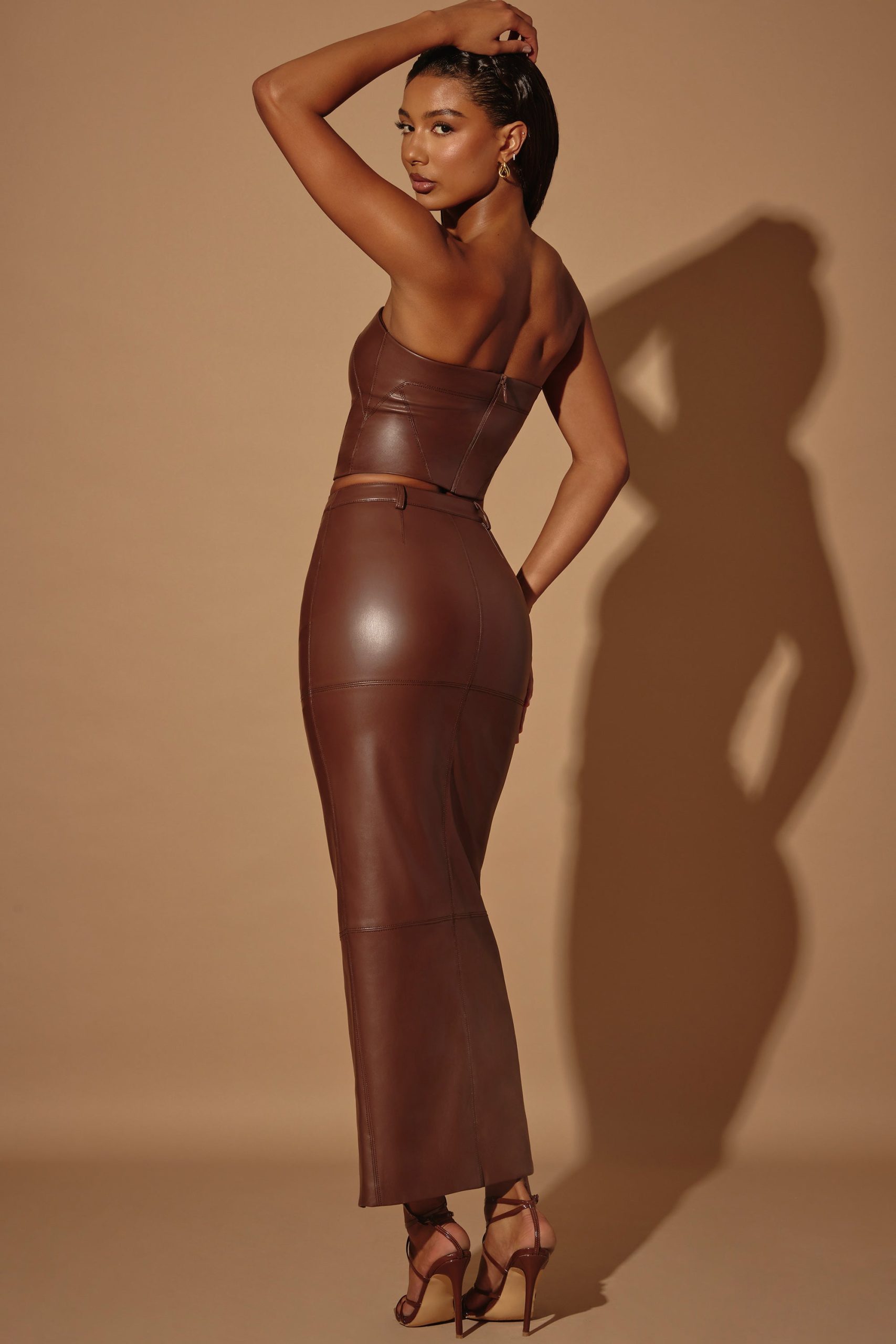 Mid-Rise Vegan Leather Maxi Skirt in Brown
