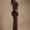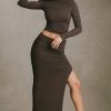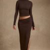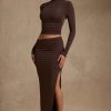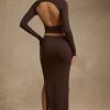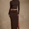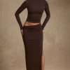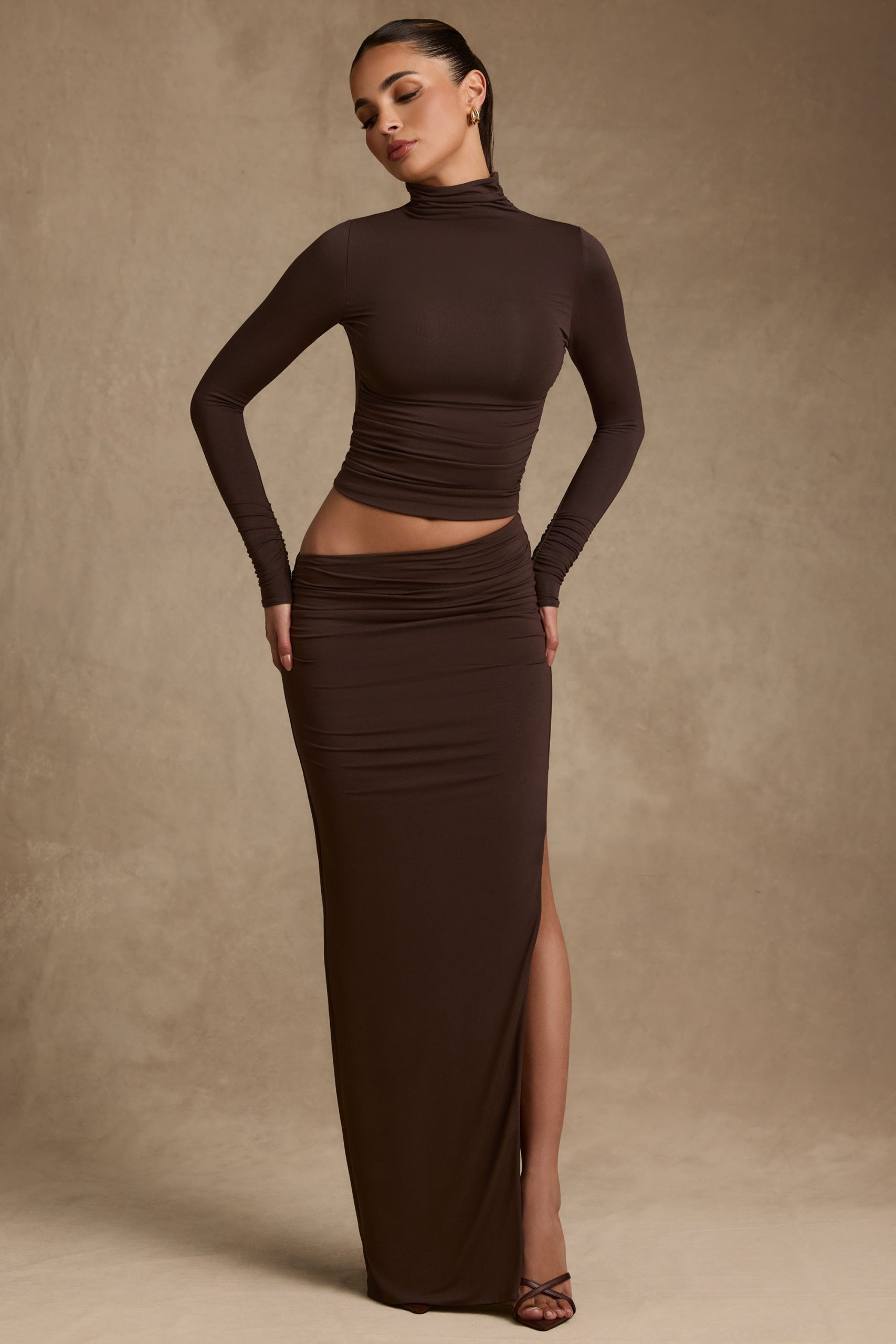 Modal Asymmetric-Waist Maxi Skirt in Chocolate Brown