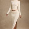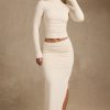 Modal Asymmetric-Waist Maxi Skirt in Ivory
