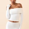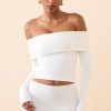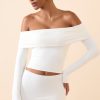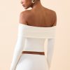 Contemporary classics. An updated take on everyone’s favourite staple, the Kesia top is cut to an off-shoulder silhouette with a foldover ruched neckline. It features internal silicone tape for enhanced hold, is framed with fitted long sleeves and is crafted from our signature buttery soft jersey fabric made with TENCEL™ Modal fibres, derived from controlled or certified wood sources.