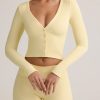 Modal Ribbed Cropped Cardigan in Buttercream Yellow