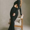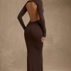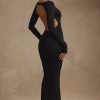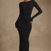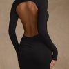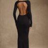 Modal Ruched Backless Maxi Dress in Black