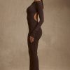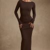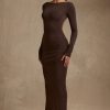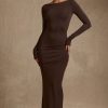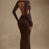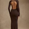 Modal Ruched Backless Maxi Dress in Chocolate Brown