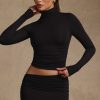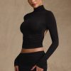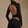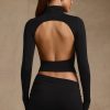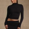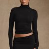 Modal Ruched Backless Turtleneck Top in Black