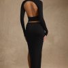 Modal Ruched Backless Turtleneck Top in Black