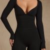 Timeless silhouettes, limitless possibilities. A style you’ll have on repeat, the Leida jumpsuit is crafted from buttery soft, stretchy and breathable jersey made with TENCEL™ Modal fibres, derived from controlled or certified wood sources. Cut to a classic straight-leg silhouette that’s designed to hug your curves for a bodycon fit, it’s elevated with ruched side seams for added comfort and a bust-flattering plunge neckline.