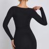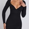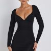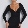 Modal Ruched Long-Sleeve Mini Dress in Black