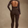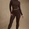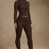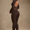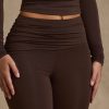 Modal Ruched Mid-Rise Leggings in Chocolate Brown