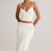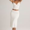 Modal Ruched Mid-Rise Midaxi Skirt in White