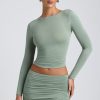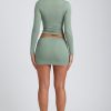 Modal Ruched Mid-Rise Mini Skirt in Sage Green