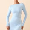 Modal Ruched Open-Back Mini Dress in Ice Blue