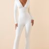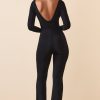 Modal Ruched Plunge Flared Jumpsuit in Black