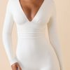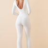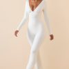 Modal Ruched Plunge Flared Jumpsuit in White
